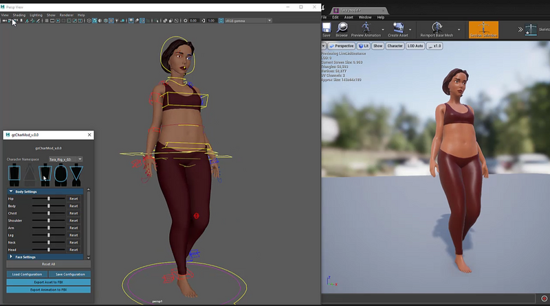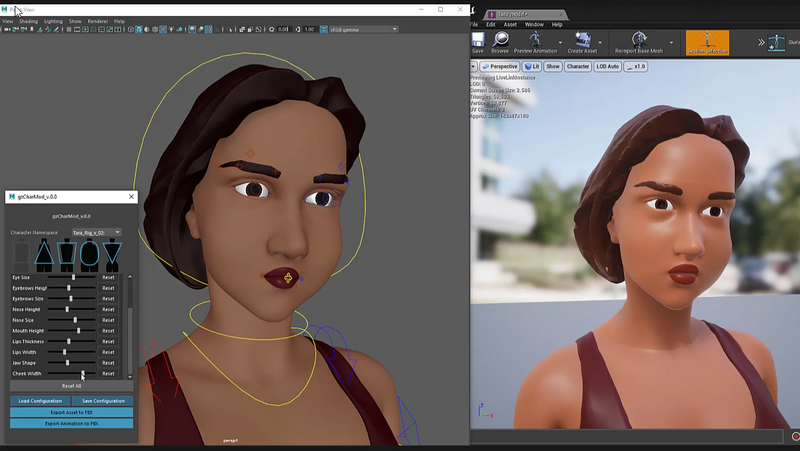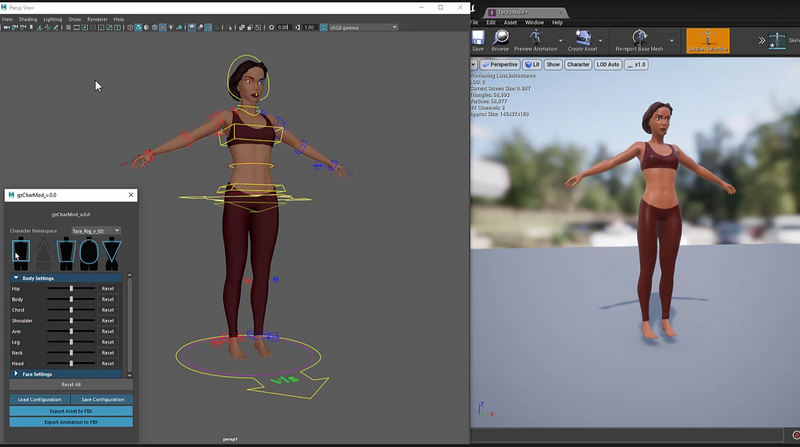 Biped rig was built to support avatar customization options. GUI within Maya makes visualization a breeze, but would be controlled differently in unreal/unity during run-time. The ‘Live Link’ tool from Unreal is really neat and we took this opportunity to mess around with it at the same time